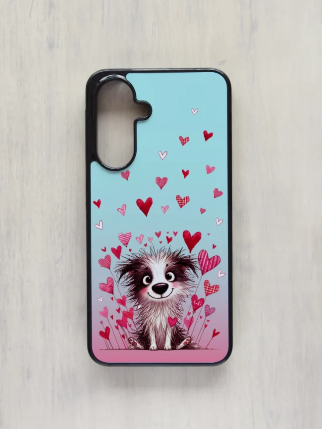 Samsungi telefonikaaned, musta värvi plastikust, tagakaanele trükitud valmiskujundusega.